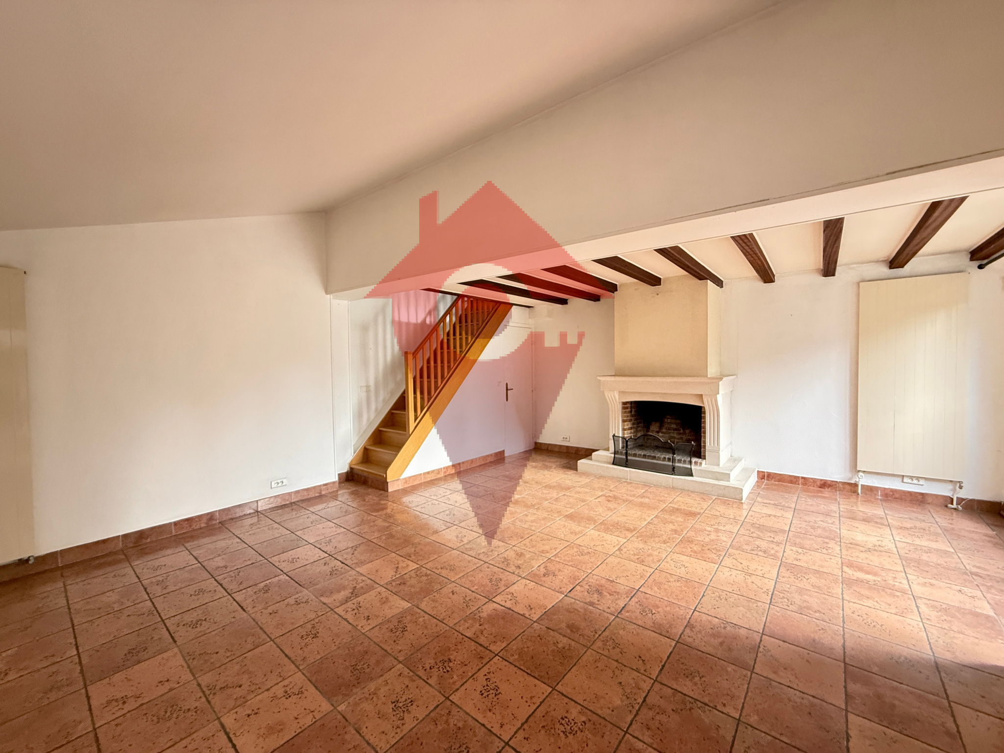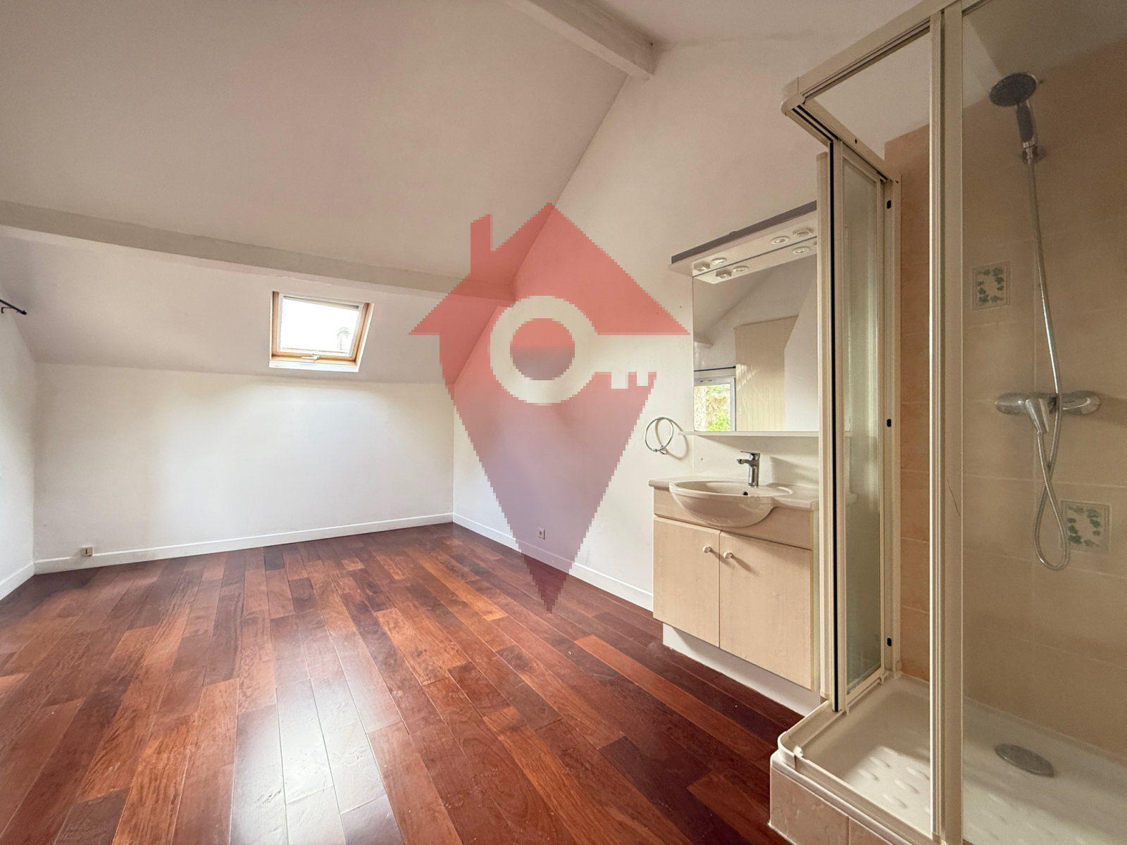 A l'étage, coté salon, un escalier mène à une chambre avec douche. A l'étage coté entrée, un deuxième escalier vous mène a un palier qui dessert 2 chambres, une salle de bains et les combles aménagées en une chambre avec rangements.