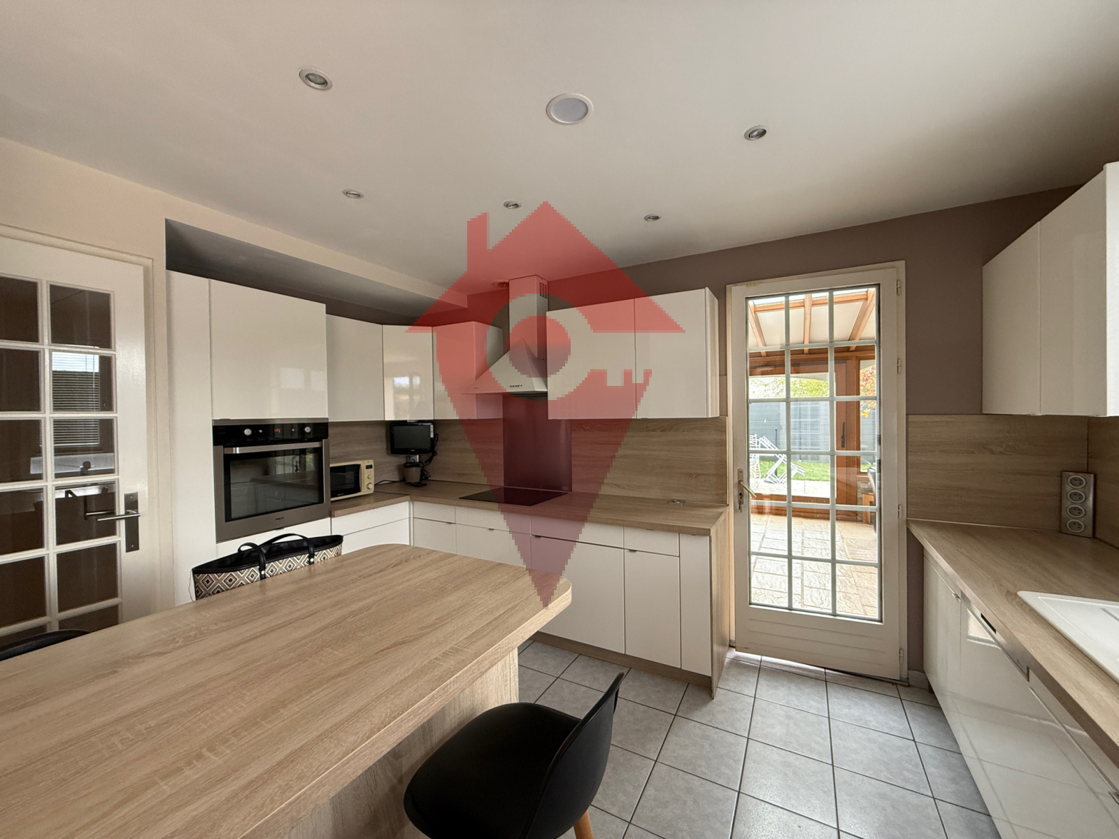 Une grande véranda de 32 m² vient compléter les espaces de vie, offrant un véritable lieu de réception ou de détente, baigné de lumière et ouvert sur le jardin.