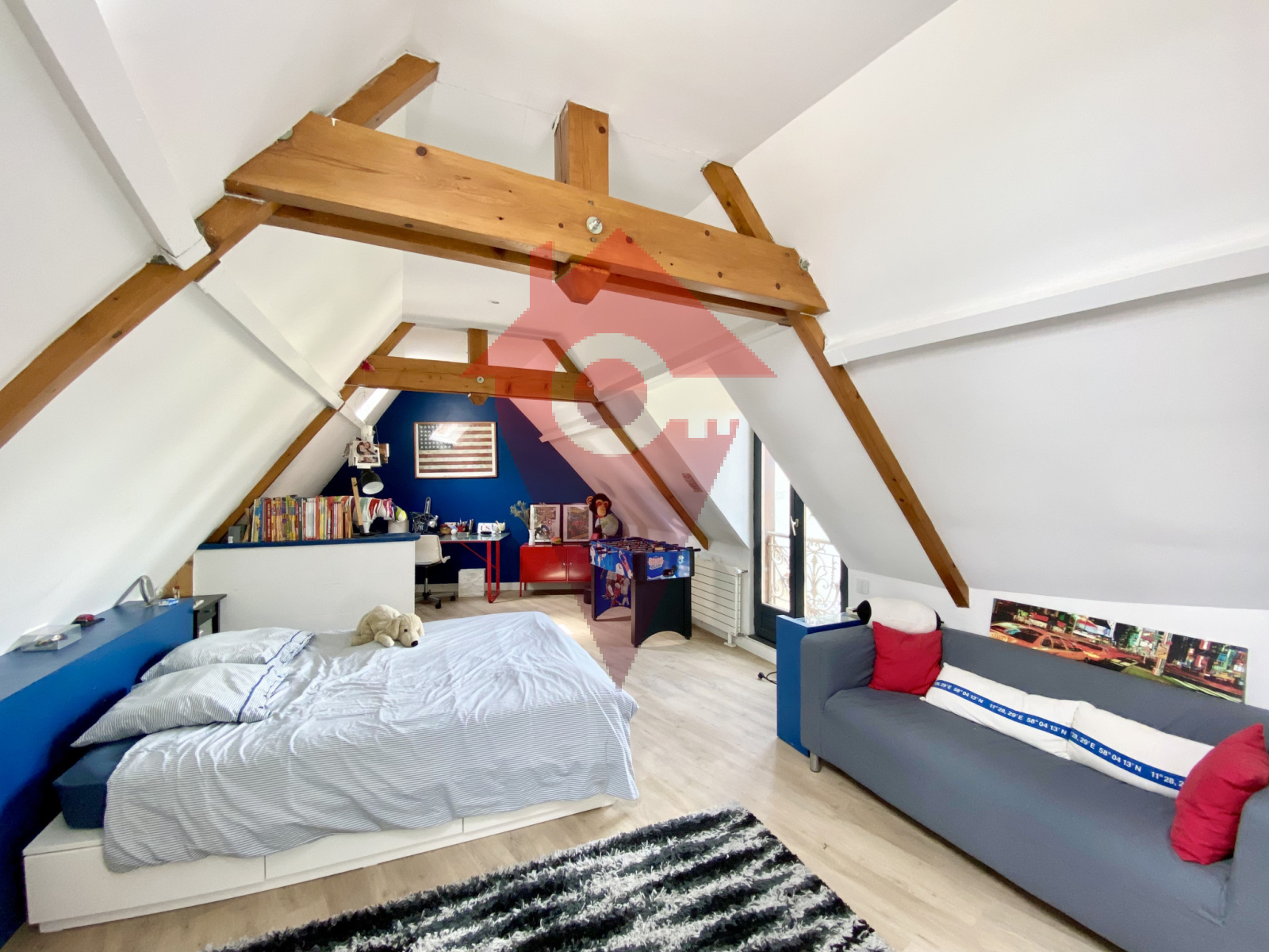 A l'étage, un palier dessert : 2 chambres avec leur salle d'eau, les chambres 3 et 4 sont en enfilade avec possibilité de créer une salle d'eau.